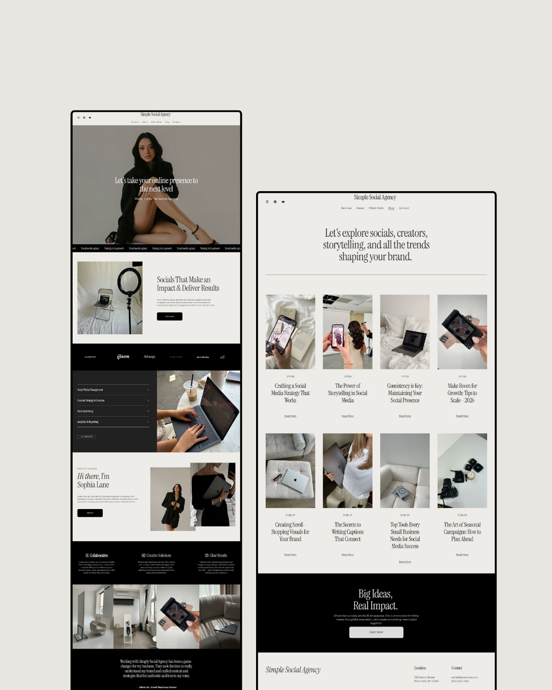 The Social Simple Squarespace Template includes 6 elegantly designed and strategically structured pages.